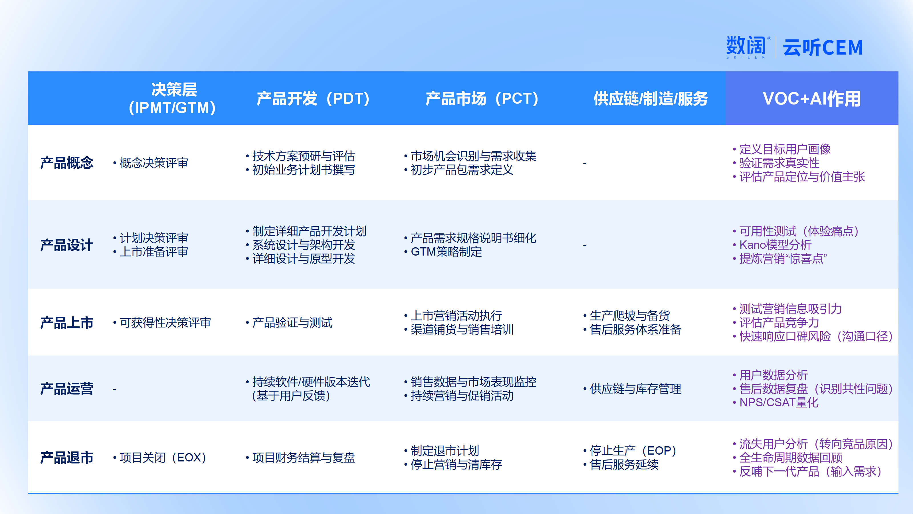 为什么有的品牌能把IPMS用出“盈利效果”?核心是用VOC+AI补上了“以客户为中心”的数据闭环,让“客户声音”能够自动穿透IPMS的产品概念-设计-上市-运营-退市全流程。