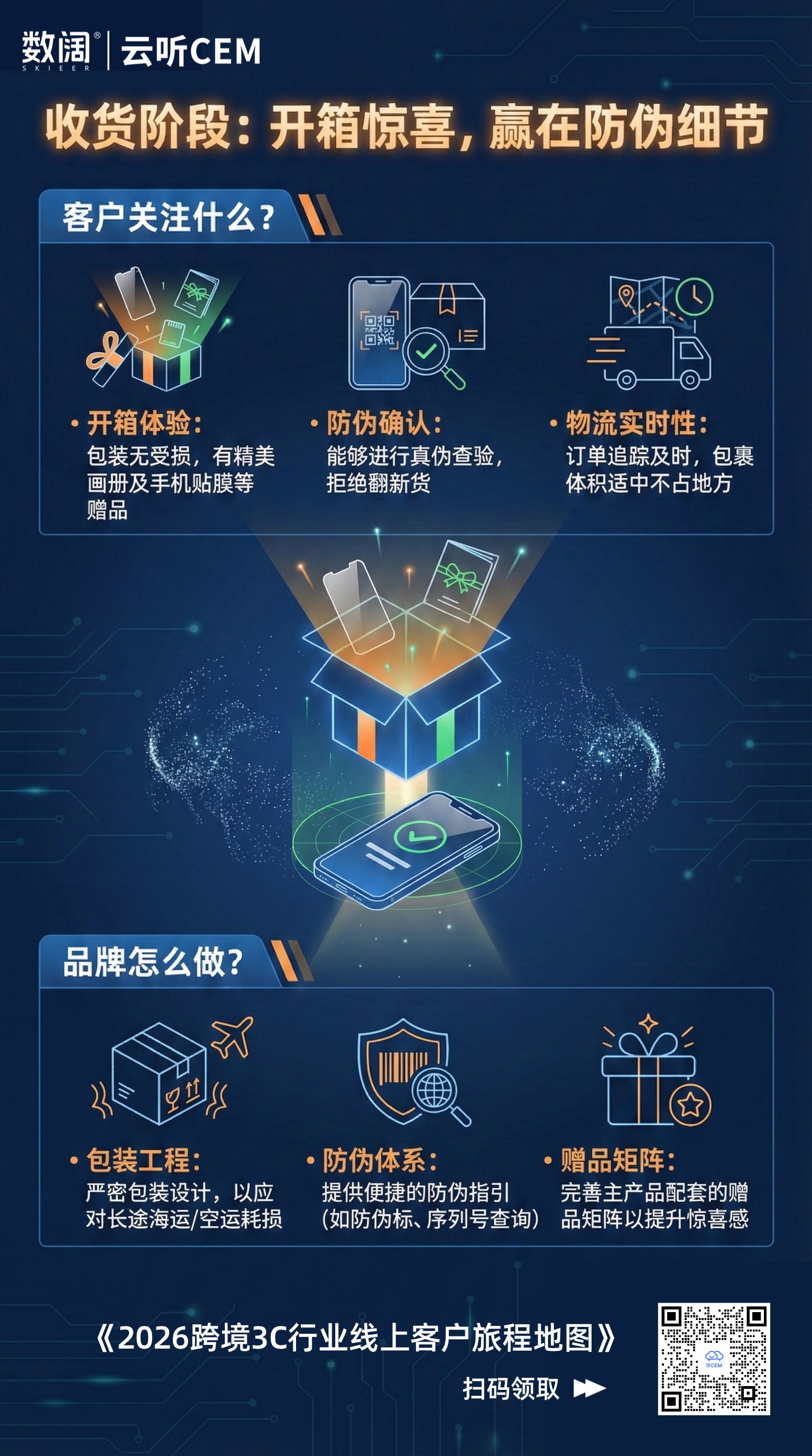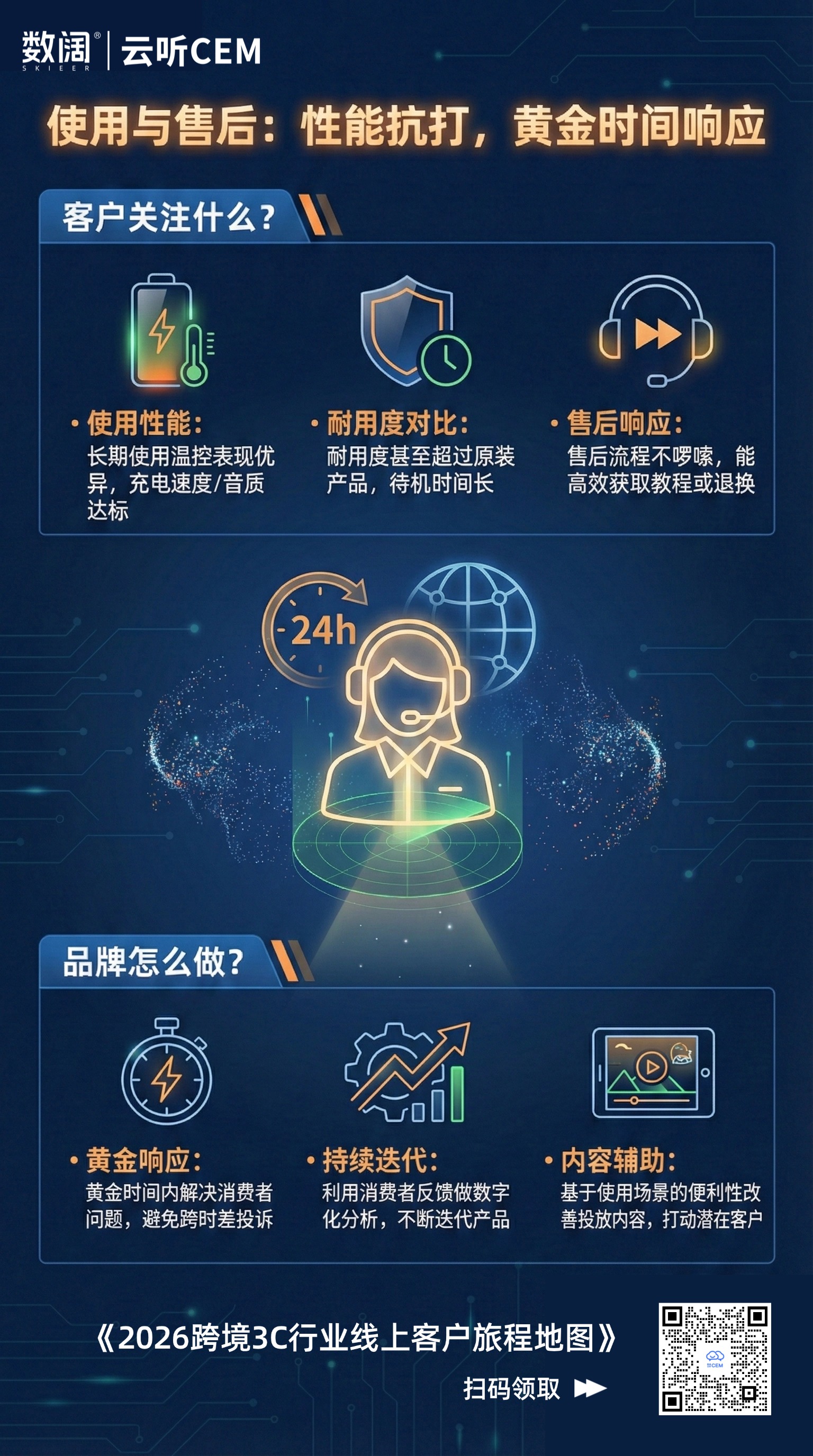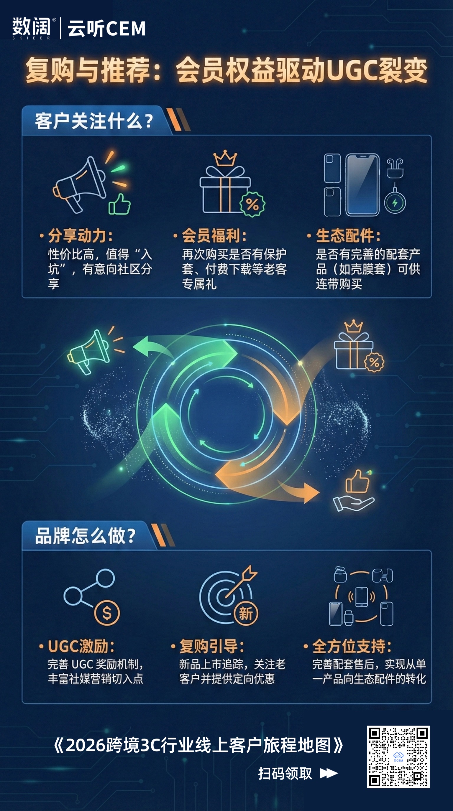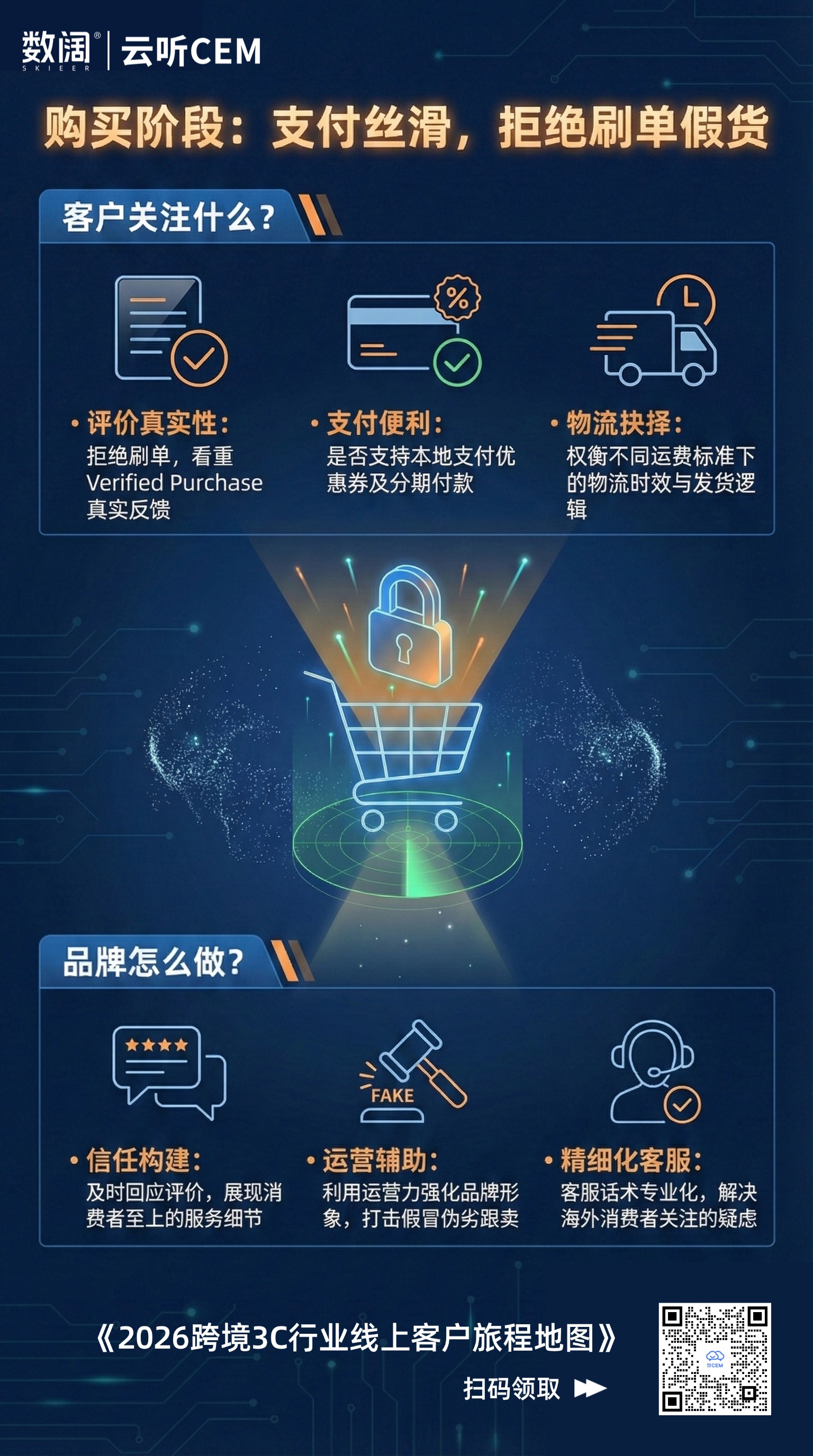 数阔云听CEM基于行业深度实战,为跨境3C卖家梳理出《2026跨境3C行业线上客户旅程地图》!